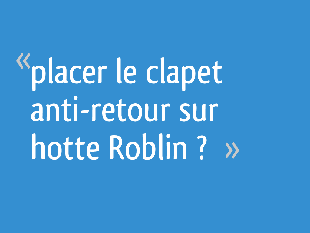 Hotte Avec Ou Sans Clapet Anti Retour